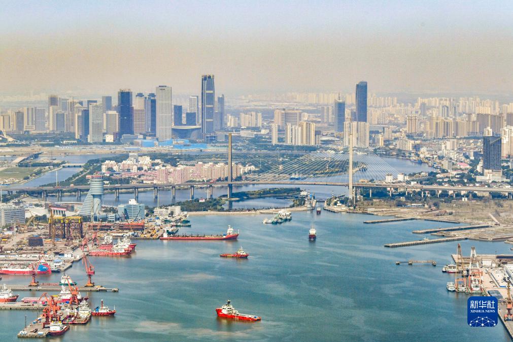 這是6月16日從直升機上拍攝的天津港主航道。天津港是京津冀地區的海上門(mén)戶(hù),是世界等級最高的人工深水港,更是服務(wù)“一帶一路”倡議的重要節點(diǎn)。