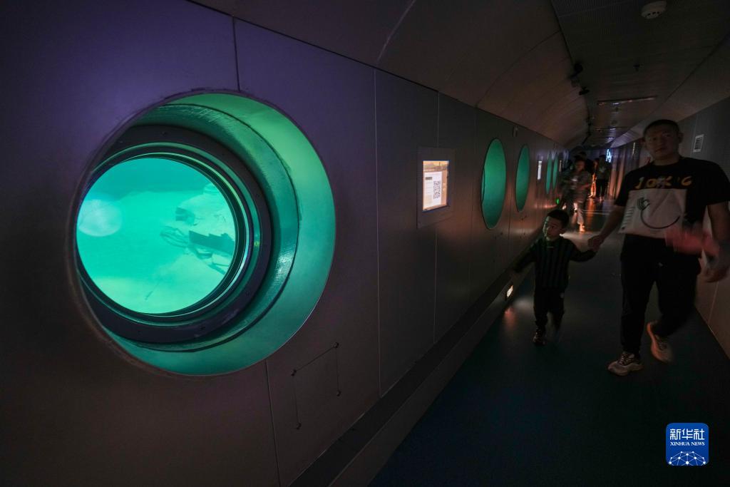 10月13日,游客在重慶涪陵白鶴梁水下博物館的水下參觀(guān)廊道內參觀(guān)。