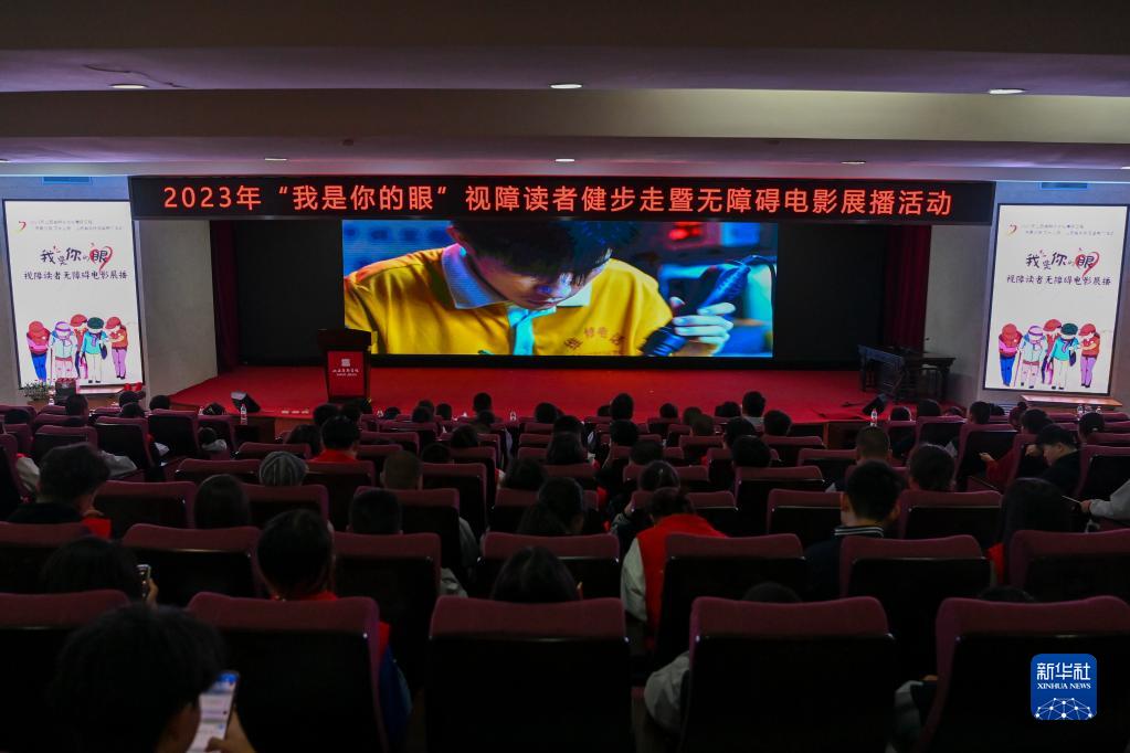 這是10月13日在太原拍攝的山西省圖書(shū)館無(wú)障礙電影展播活動(dòng)現場(chǎng)。