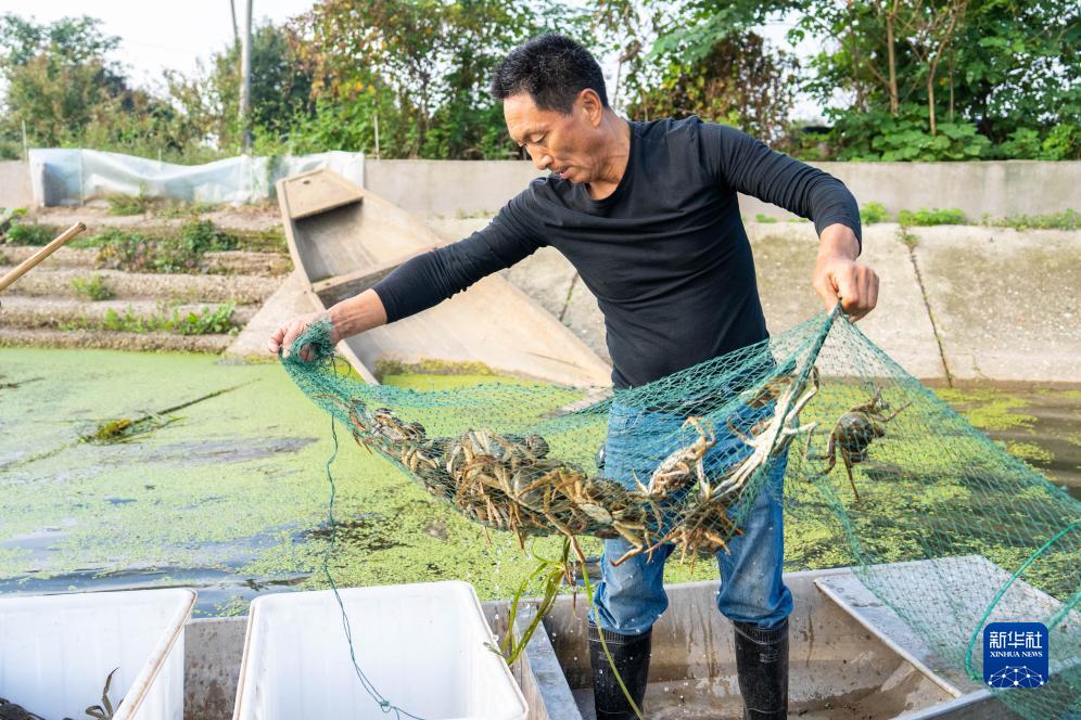 近日,洞庭湖養殖的螃蟹迎來(lái)了豐收季,湖南省益陽(yáng)市大通湖管理區的蟹農正抓緊捕撈,供應各地市場(chǎng)。大通湖是洞庭湖的重要組成部分,水產(chǎn)資源豐富。