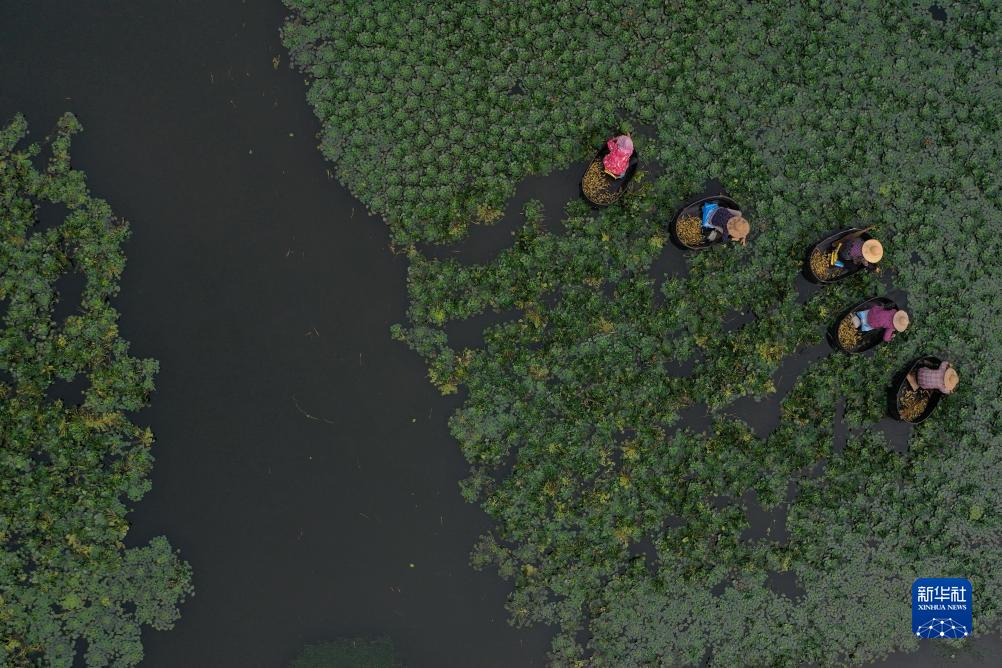 近日,浙江省湖州市南潯區和孚鎮多個(gè)鄉村種植的菱角進(jìn)入收獲季。村民劃著(zhù)菱桶在水面采菱,展現一幅江南水鄉獨有的豐收圖景。