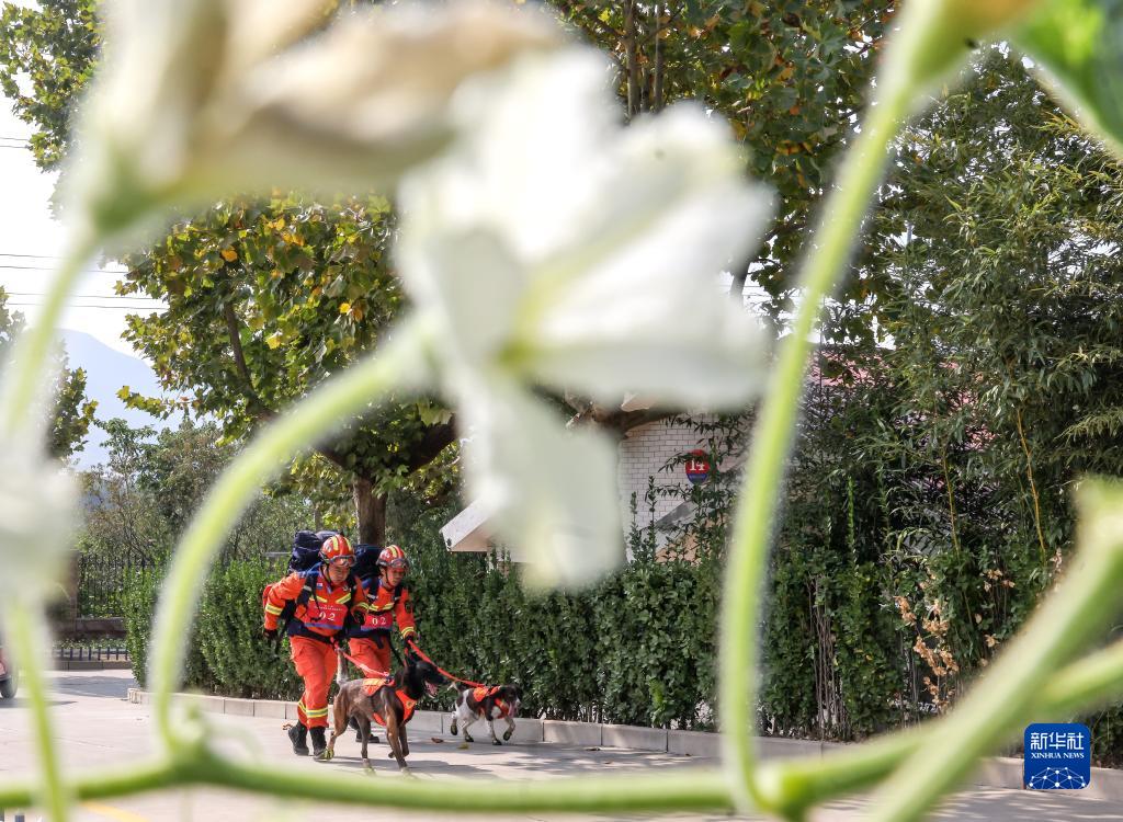 10月14日,參賽訓導員和搜救犬前往廢墟搜救主場(chǎng)地。