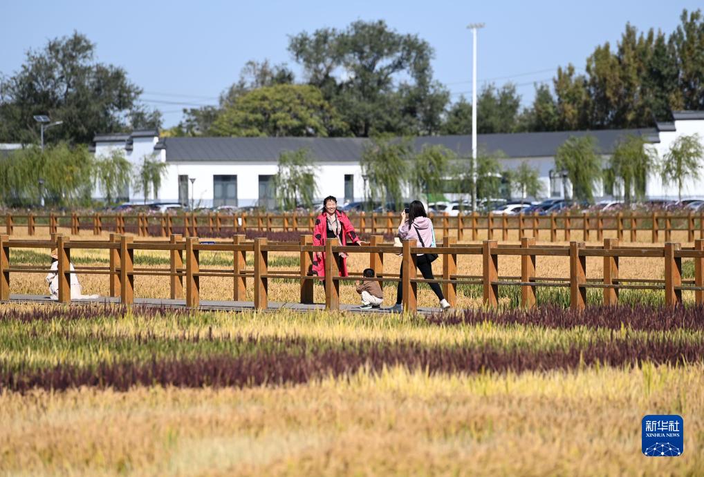 10月14日,游客在天津市津南區小站鎮會(huì )館村小站稻核心種植區內游覽。