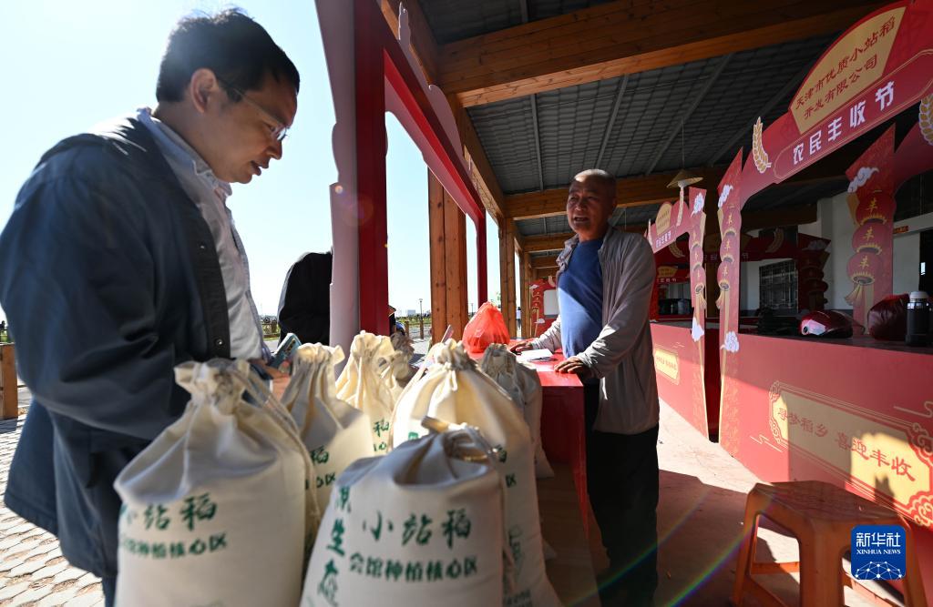 10月14日,游客在天津市津南區小站鎮會(huì )館村小站稻核心種植區購買(mǎi)小站稻米。