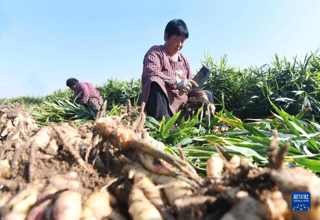 10月14日,河北省石家莊新樂(lè )市協(xié)神鄉北青同村農民在收獲生姜。