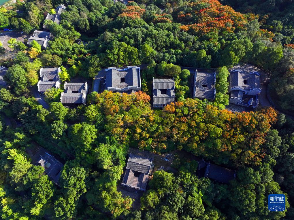 10月14日拍攝的湖北省秭歸縣屈原故里文化旅游區秋色(無(wú)人機照片)。