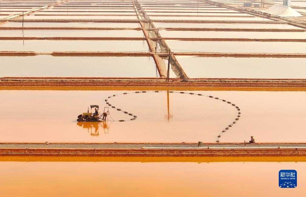 近日,河北省灤南縣鹽業(yè)生產(chǎn)企業(yè),搶抓晴好天氣收獲秋鹽,鹽池內呈現出一派忙碌景象。據介紹,該縣鹽田面積達15000畝,年產(chǎn)原鹽達5萬(wàn)多噸。