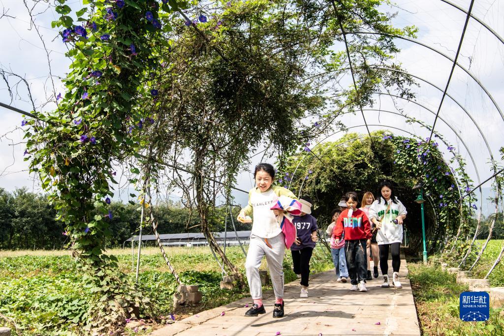 10月14日,游客在重慶市將軍村一處田間藝術(shù)景觀(guān)游玩參觀(guān)。