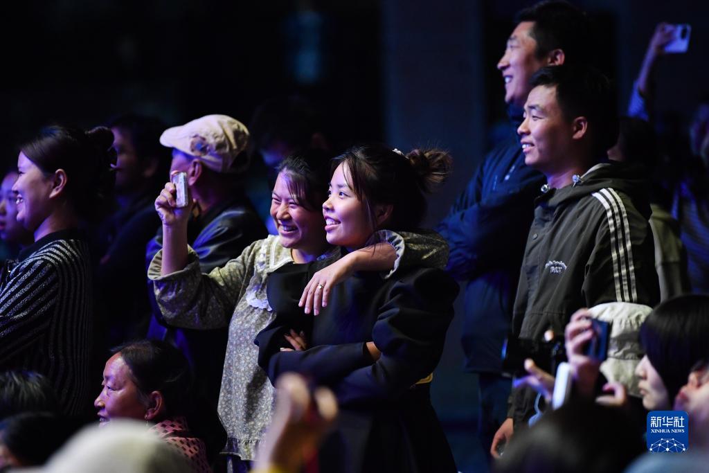 10月14日,村民和游客在大南坡村內廣場(chǎng)觀(guān)看演出。