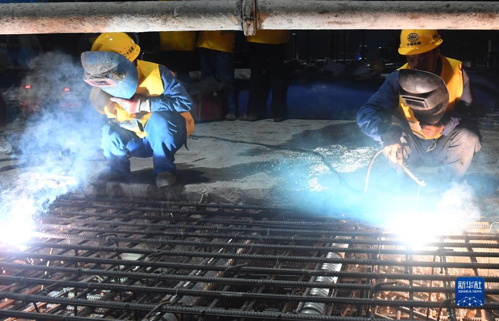 10月15日,中鐵二十五局工人在湘桂鐵路柳江雙線(xiàn)特大橋合龍建設施工現場(chǎng)工作。