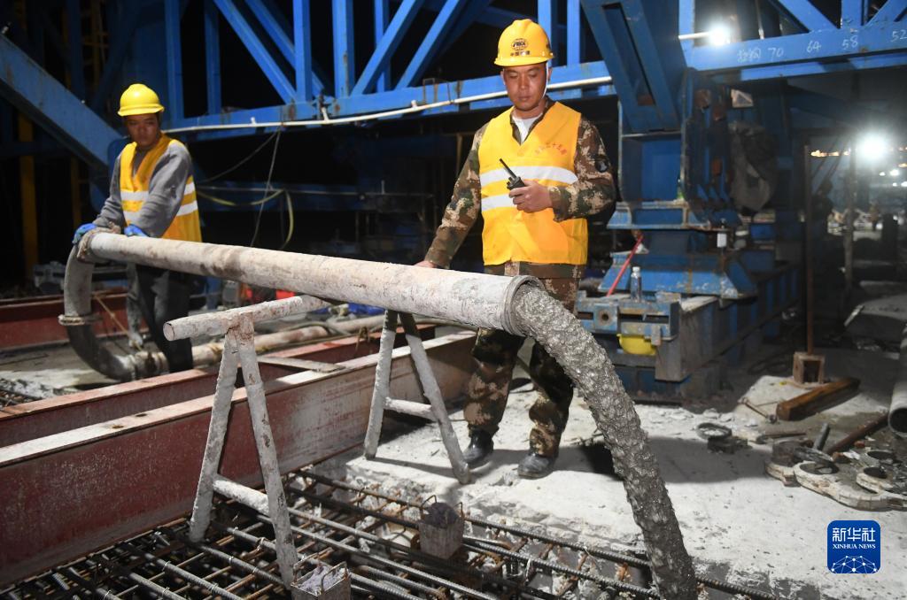 10月15日,中鐵二十五局工人在湘桂鐵路柳江雙線(xiàn)特大橋合龍建設施工現場(chǎng)工作。