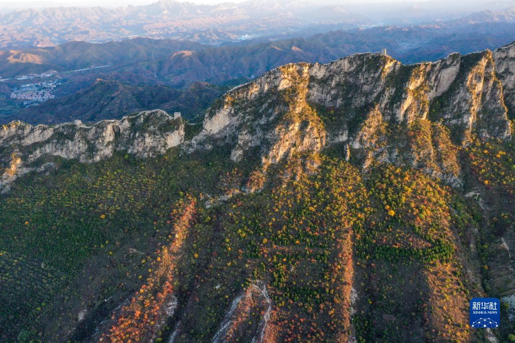朝陽(yáng)下的司馬臺長(cháng)城(無(wú)人機照片,10月15日攝)。