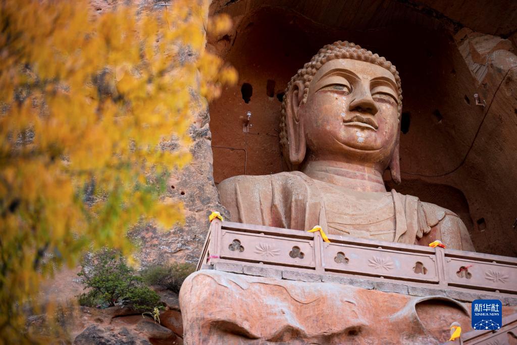 金秋時(shí)節,位于寧夏固原市原州區的須彌山石窟景區秋意漸濃,風(fēng)景如畫(huà)。