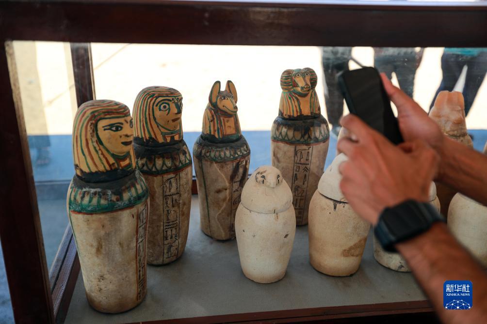 這是10月15日在埃及明亞省考古現場(chǎng)拍攝的出土文物。