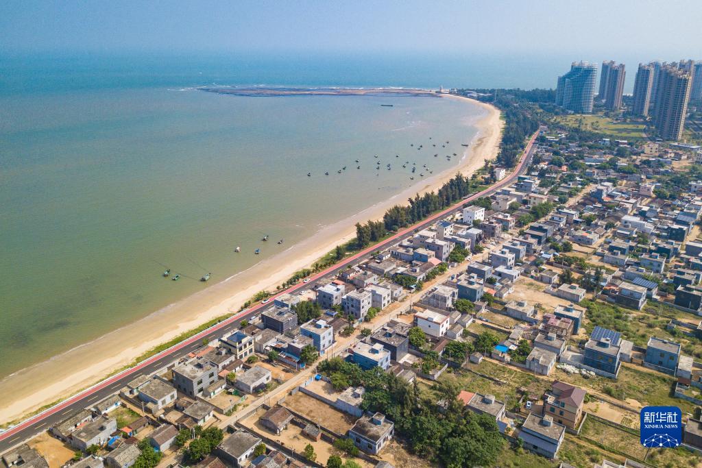 10月15日拍攝的海南環(huán)島旅游公路臨高段景色(無(wú)人機照片)。