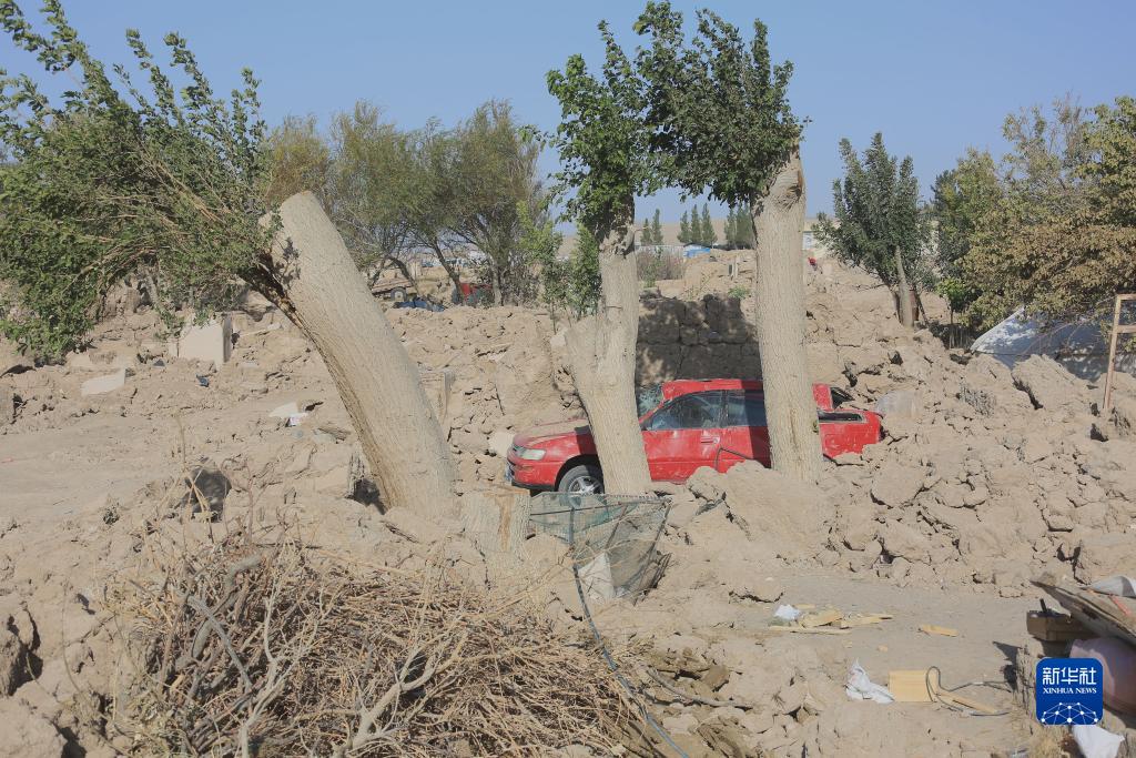 這是10月16日在阿富汗西部赫拉特省拍攝的地震中倒塌的民居。