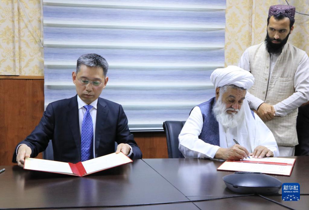 10月15日,在阿富汗首都喀布爾,中國駐阿富汗大使趙星(左)與阿臨時(shí)政府災難管理部代理部長(cháng)阿洪德簽署中國政府和中國紅十字會(huì )援阿物資交接證書(shū)。