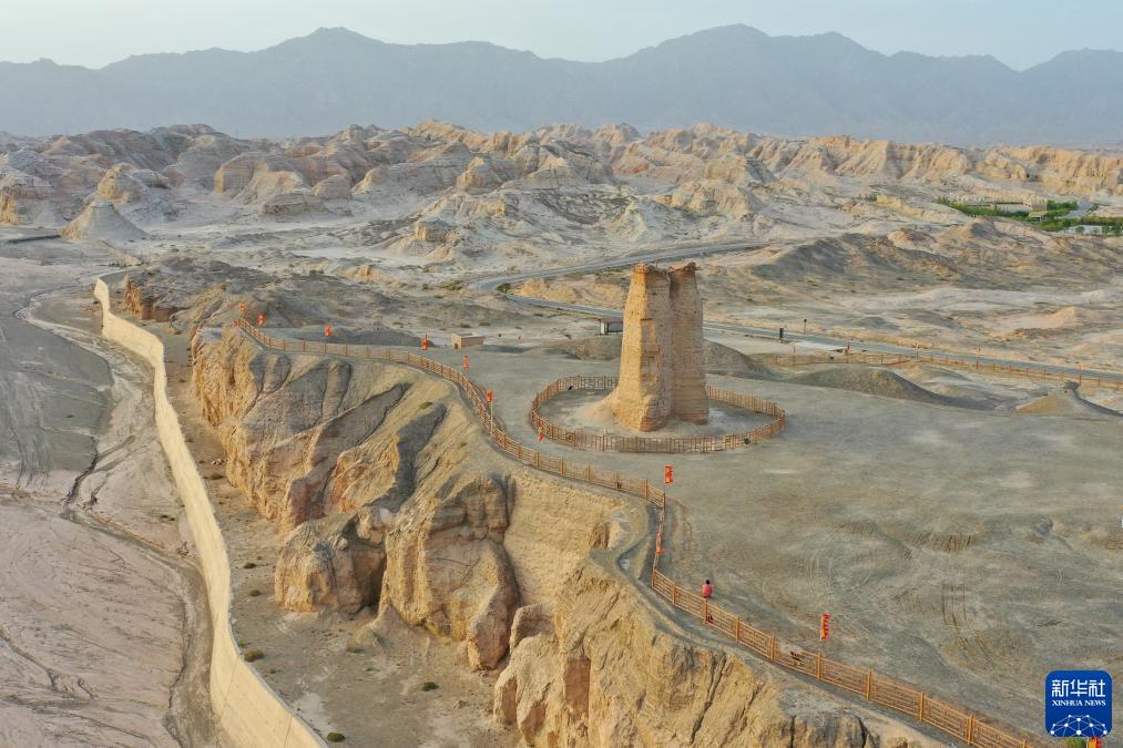這是9月8日在新疆庫車(chē)市拍攝的克孜爾尕哈烽燧(無(wú)人機照片)。
