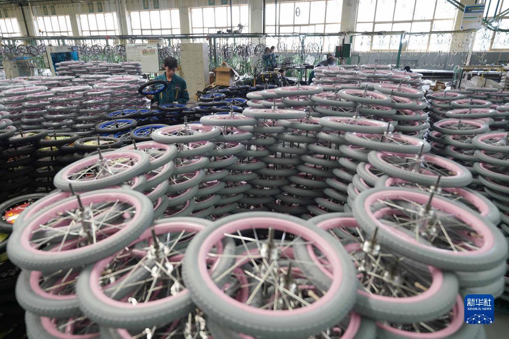 10月16日,平鄉縣一家童車(chē)生產(chǎn)企業(yè)的工人在整理童車(chē)輪胎。