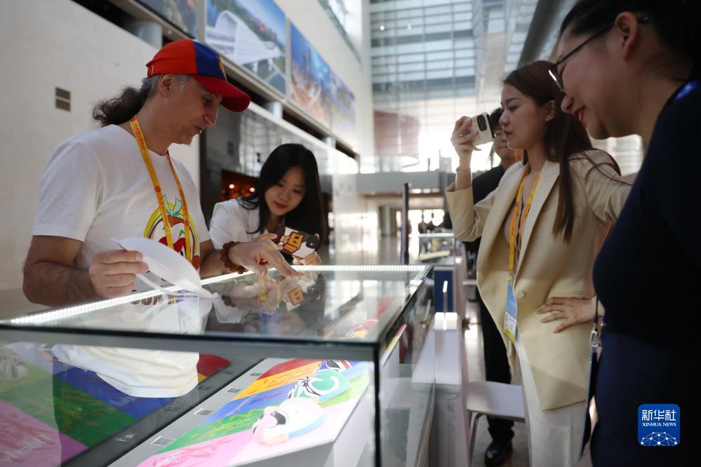10月16日,參會(huì )記者在“一帶一路”國際合作高峰論壇新聞中心參觀(guān)展示的中國非物質(zhì)文化遺產(chǎn)展品。