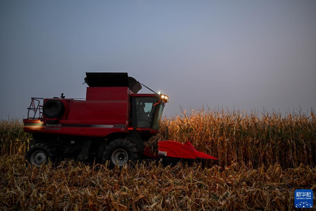 10月13日,農機手在通遼市科爾沁區豐田鎮哈拉滿(mǎn)罕村駕駛收割機搶收玉米。