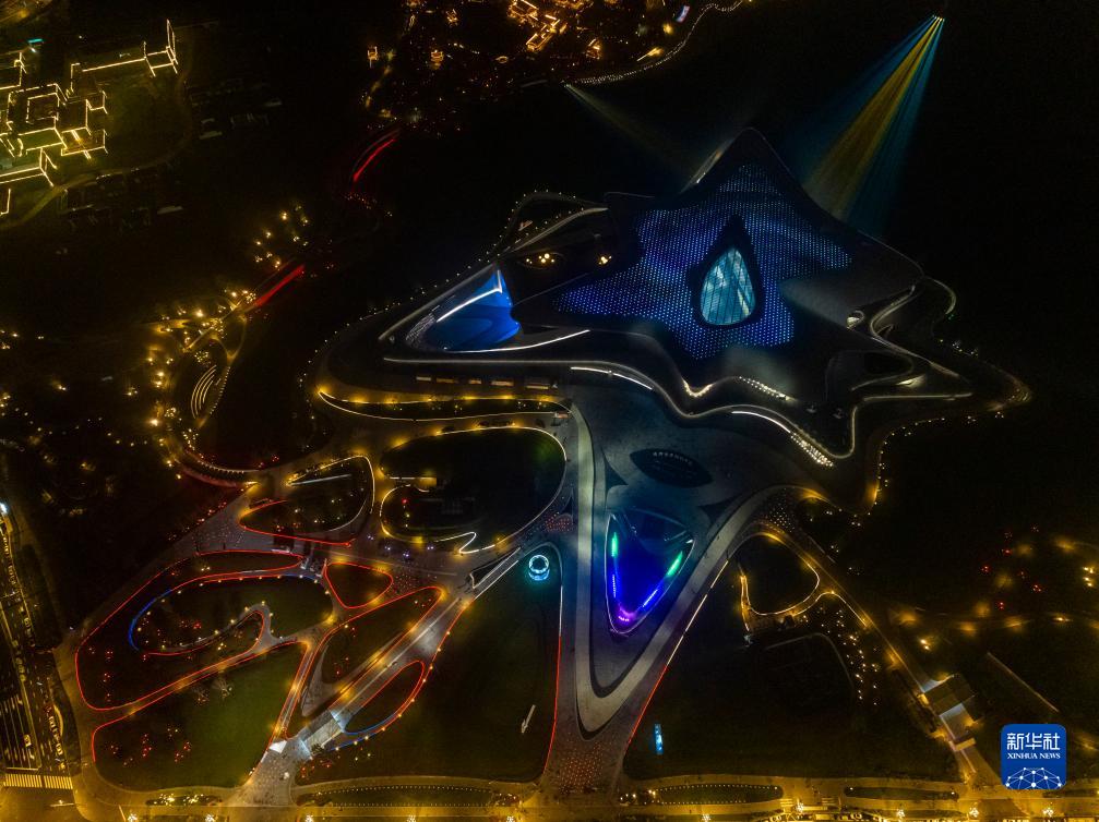 這是10月16日晚拍攝的2023成都世界科幻大會(huì )主場(chǎng)館——成都科幻館(無(wú)人機照片)。