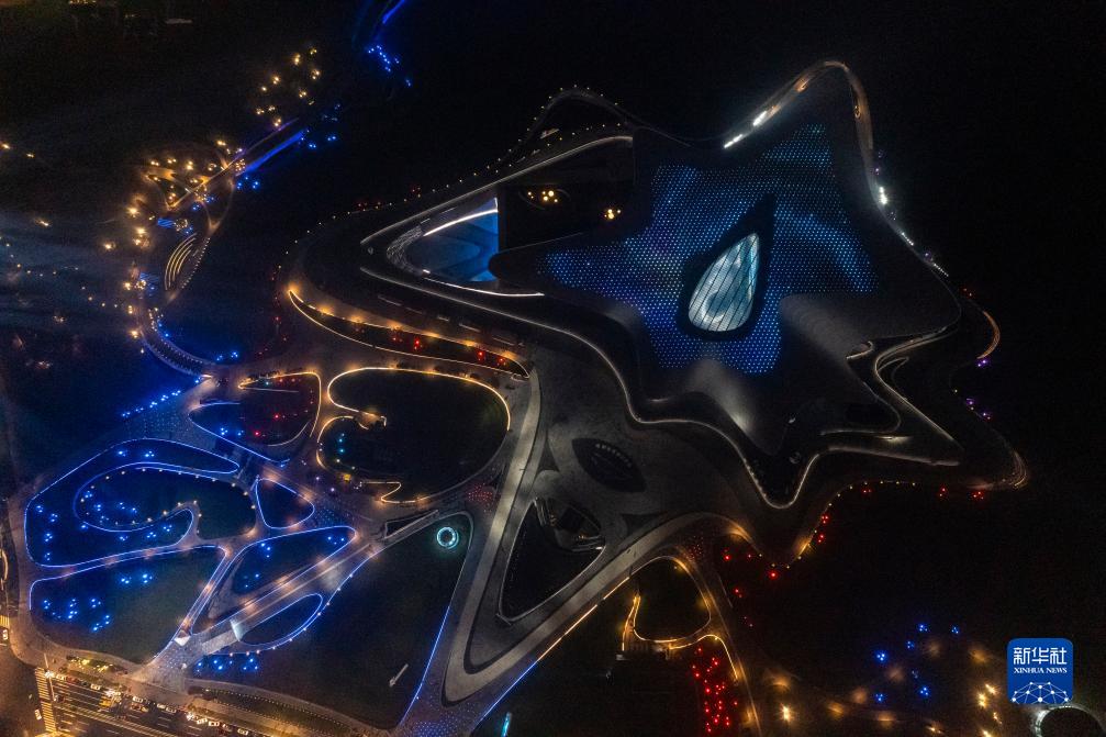 這是10月16日晚拍攝的2023成都世界科幻大會(huì )主場(chǎng)館——成都科幻館(無(wú)人機照片)。
