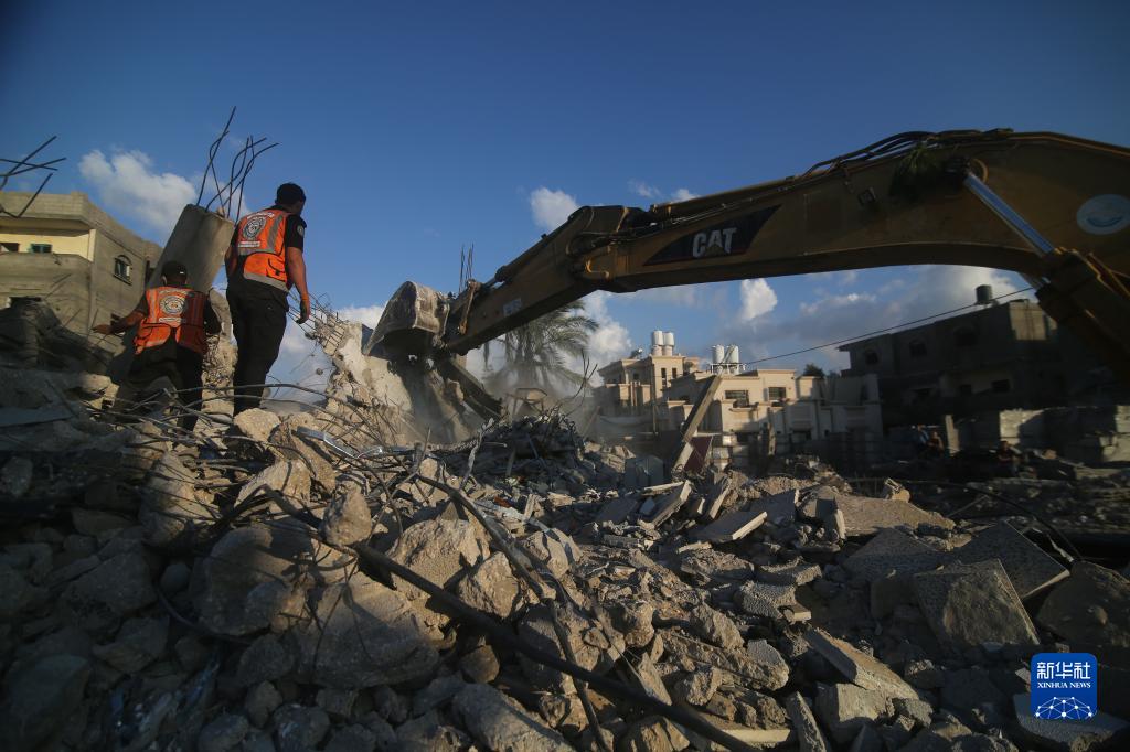 10月16日,在加沙地帶南部城市拉法,人們在遭以色列空襲損毀的建筑廢墟中實(shí)施救援。