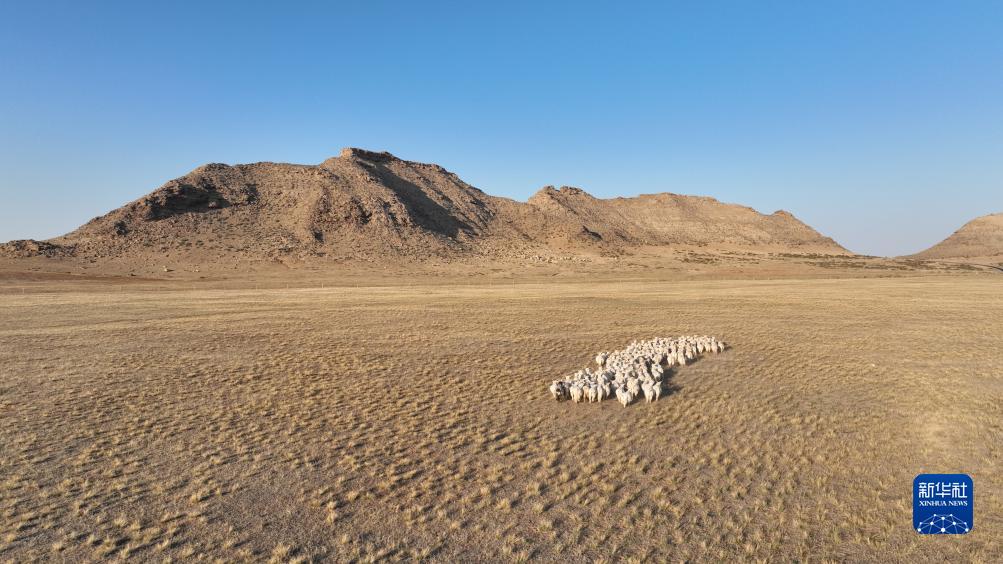 10月15日拍攝的鄂爾多斯草原秋日風(fēng)光(無(wú)人機照片)。