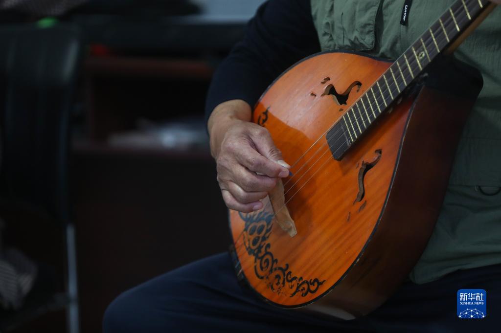 牧忙喂牛羊,閑時(shí)撫琴瑟。秋忙之余,道爾吉與父親明安寶會(huì )參加當地一項特色文藝活動(dòng)——“乃日”?!澳巳铡笨勺g為“禮樂(lè )”“娛樂(lè )”“聚會(huì )”,起源于元代,是一種以樂(lè )器歌舞為主的綜合性民間表演藝術(shù),被列入內蒙古自治區級非物質(zhì)文化遺產(chǎn)名錄。