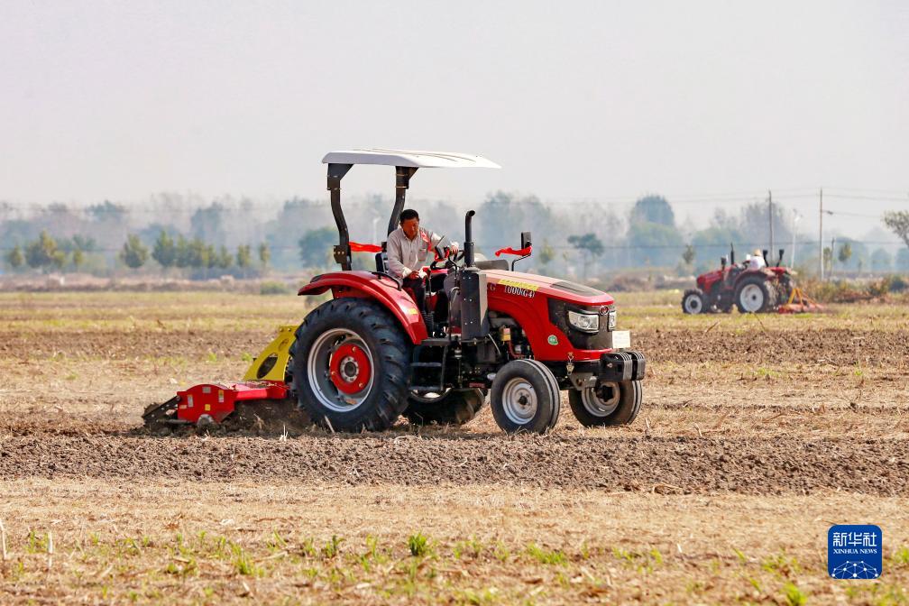 10月17日,在淮北市濉溪縣雙溝村,農民駕駛農機在田里忙碌。