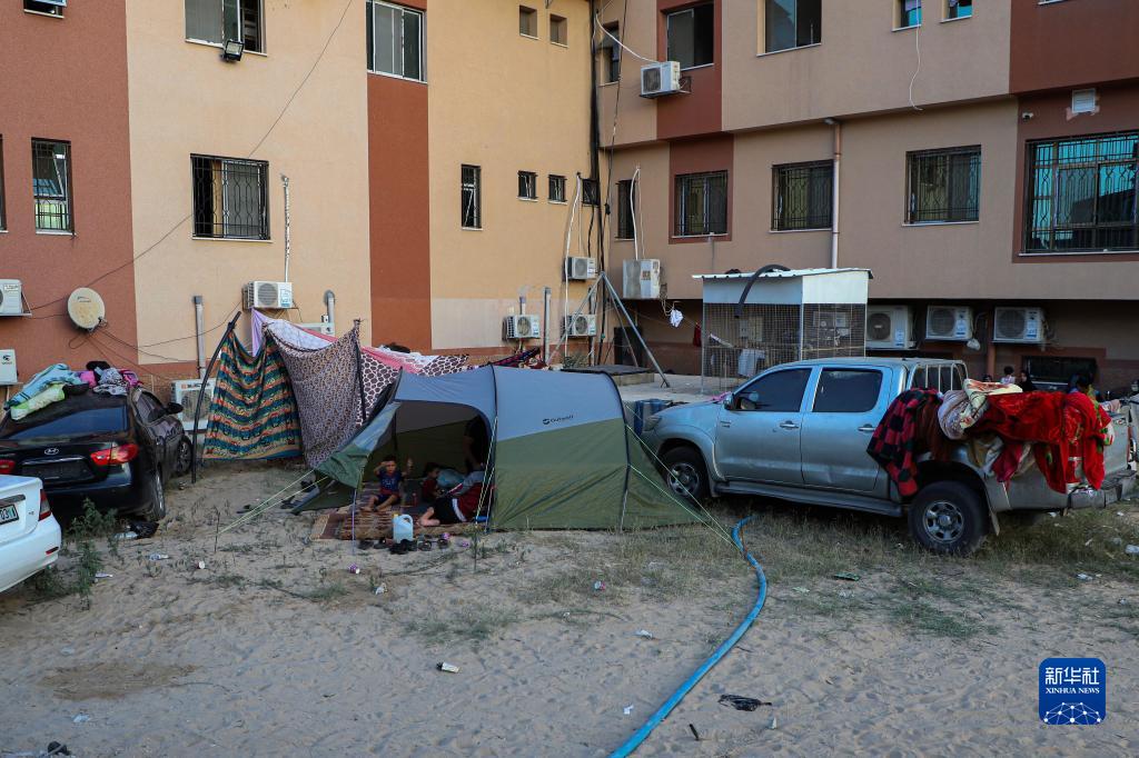 10月17日,在加沙地帶南部城市汗尤尼斯,人們在醫院避難所內休息。