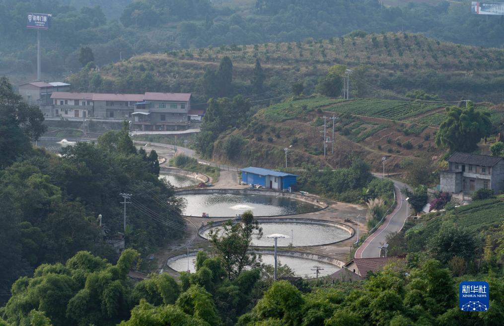 在位于四川資中縣銀山鎮的橙堡魚(yú)鄉融合發(fā)展示范園拍攝的養魚(yú)池(10月17日攝)。