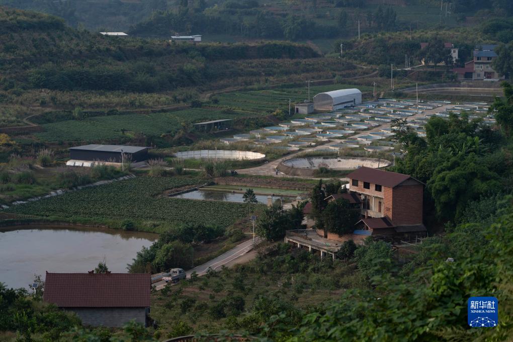 在位于四川資中縣銀山鎮的橙堡魚(yú)鄉融合發(fā)展示范園拍攝的養魚(yú)池(10月17日攝)。