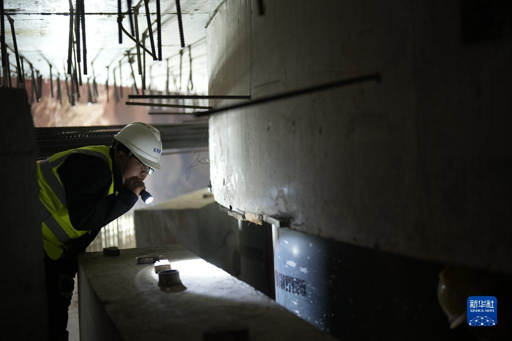 10月18日,施工人員在轉體現場(chǎng)巡查。
