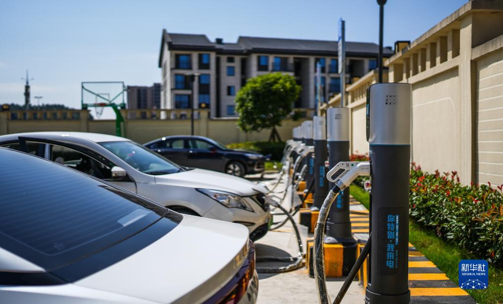 新能源汽車(chē)在黔南布依族苗族自治州龍里縣谷腳鎮的充電樁設施充電(10月17日攝)。