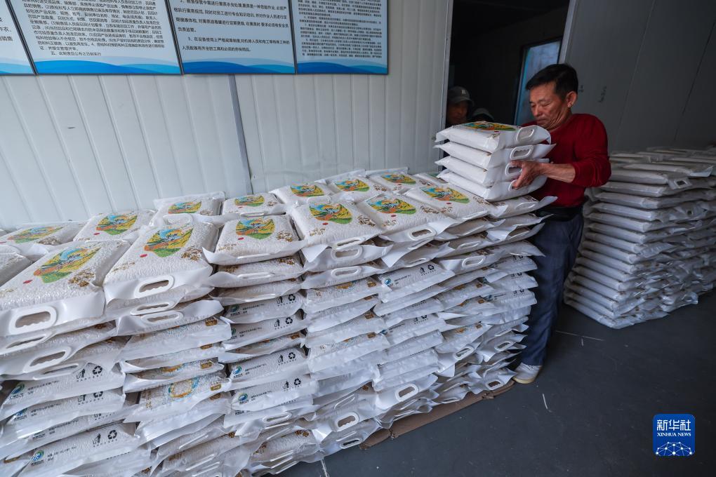 10月18日,在諸暨市蒼湖糧食專(zhuān)業(yè)合作社的加工車(chē)間里,工人把加工打包好的新米碼放好,準備運往市場(chǎng)銷(xiāo)售。