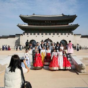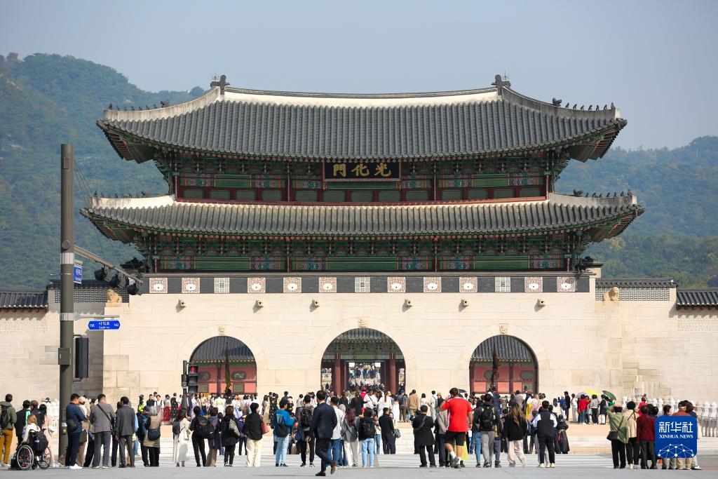 10月18日,游客在韓國首爾光化門(mén)參觀(guān)。