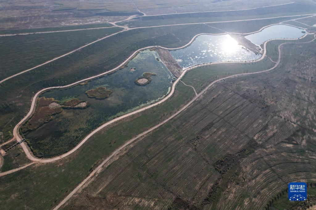 這是10月16日拍攝的蘭州新區現代農業(yè)公園水阜河生態(tài)綜合治理工程(無(wú)人機照片)。