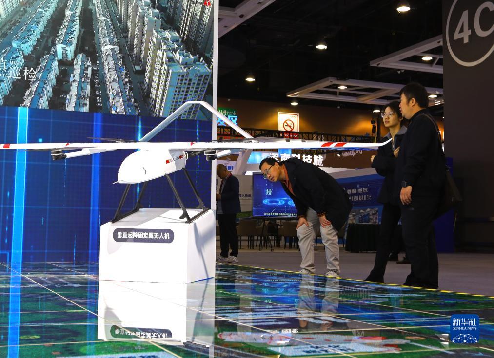 10月18日,參會(huì )者在參觀(guān)垂直起降固定翼無(wú)人機。