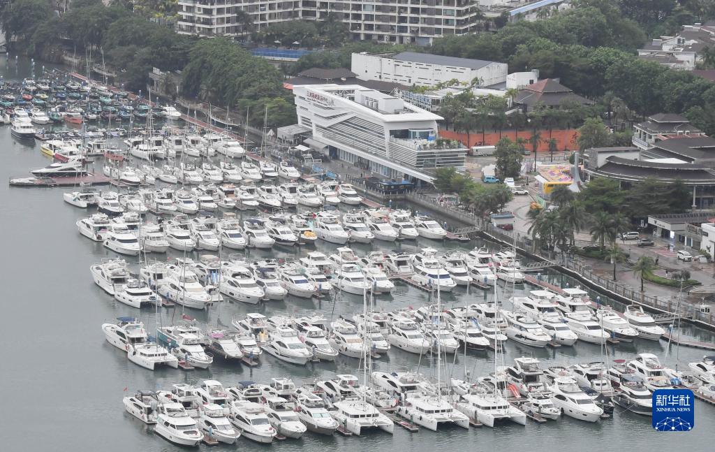 10月18日,游艇停泊在三亞市鴻洲游艇碼頭避風(fēng)。