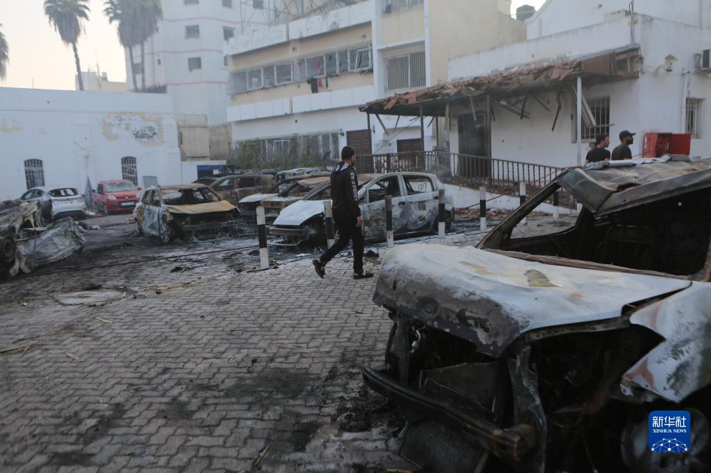 這是10月18日在加沙城拍攝的醫院遭襲現場(chǎng)。
