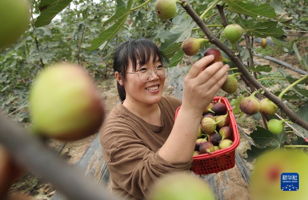 10月18日,在河南省開(kāi)封市尉氏縣大橋鄉孔家村特色農業(yè)種植基地,果農在采摘無(wú)花果。