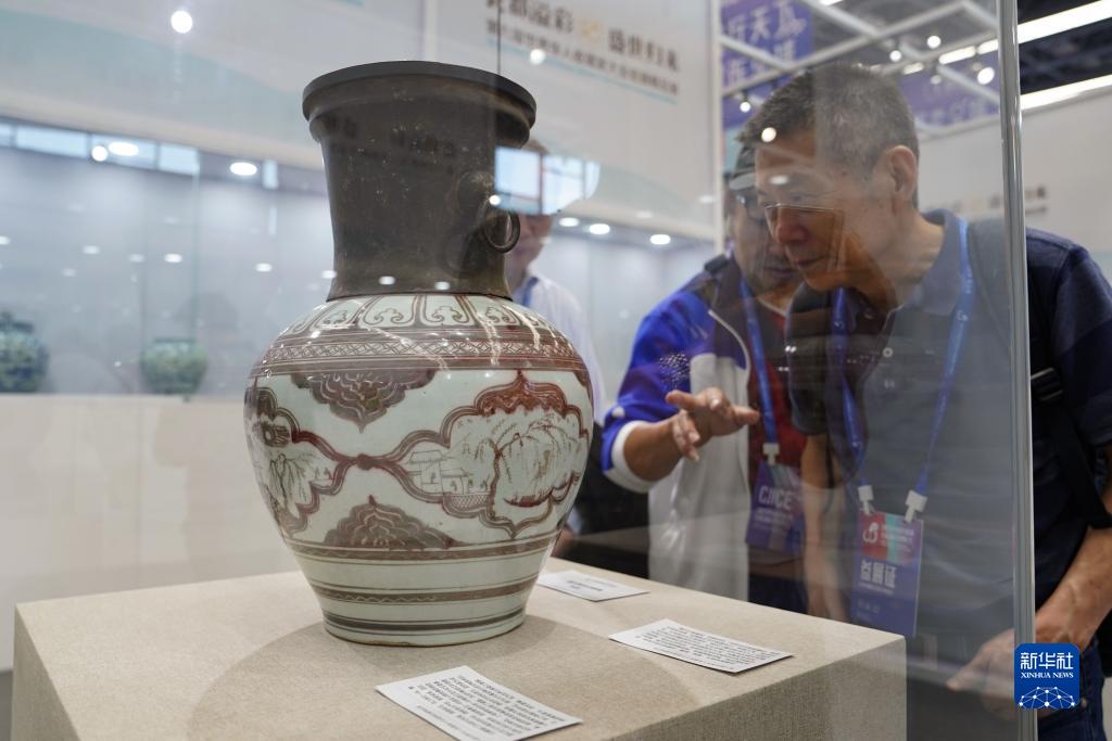 10月18日,參觀(guān)者在瓷博會(huì )現場(chǎng)舉辦的第六屆世界華人收藏家大會(huì )瓷器精品展上觀(guān)賞展品。