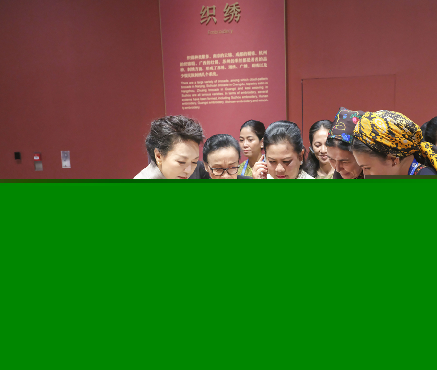 彭麗媛同出席第三屆“一帶一路”國際合作高峰論壇外方領(lǐng)導人夫人參觀(guān)中國工藝美術(shù)館