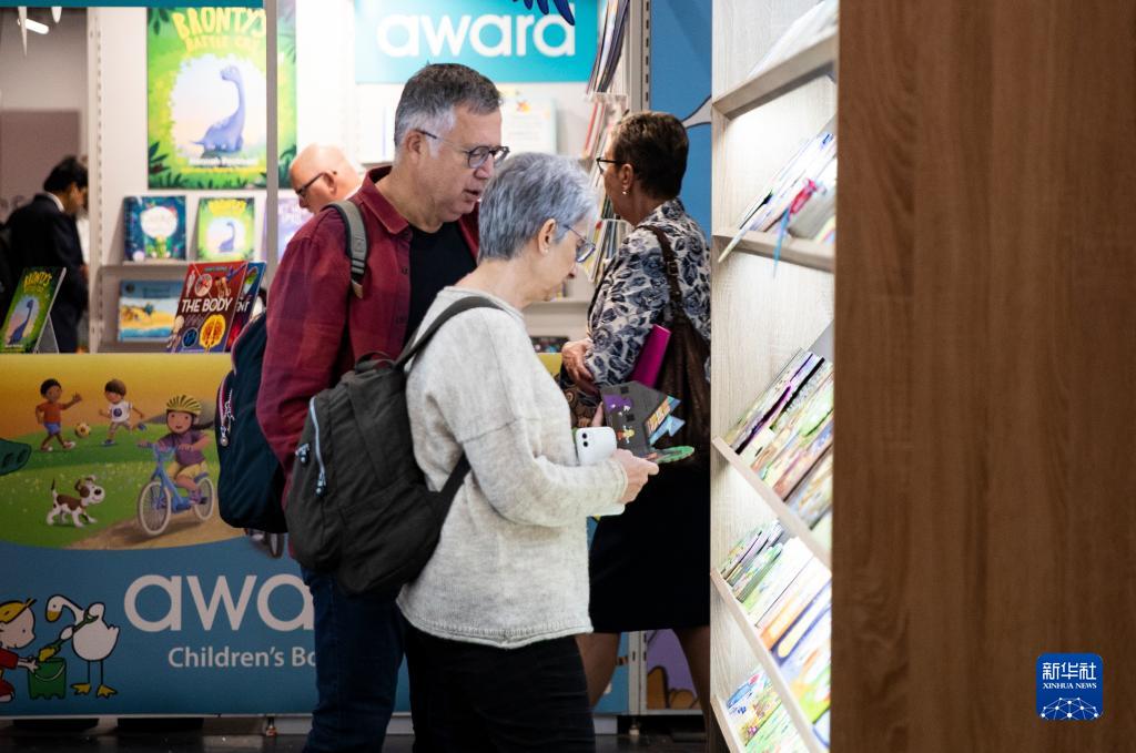 10月18日,人們在德國法蘭克福書(shū)展上翻閱圖書(shū)。