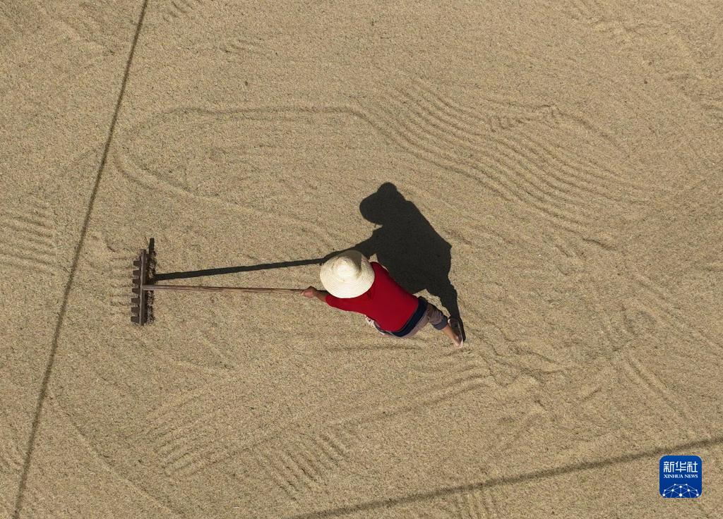 入秋以來(lái),湖南各地晚稻陸續成熟,農民抓住好天氣搶收晾曬。