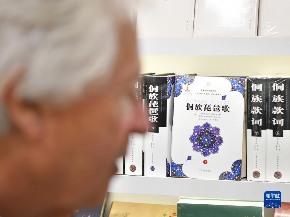 10月18日,一名參觀(guān)者在德國法蘭克福書(shū)展中國展區參觀(guān)。