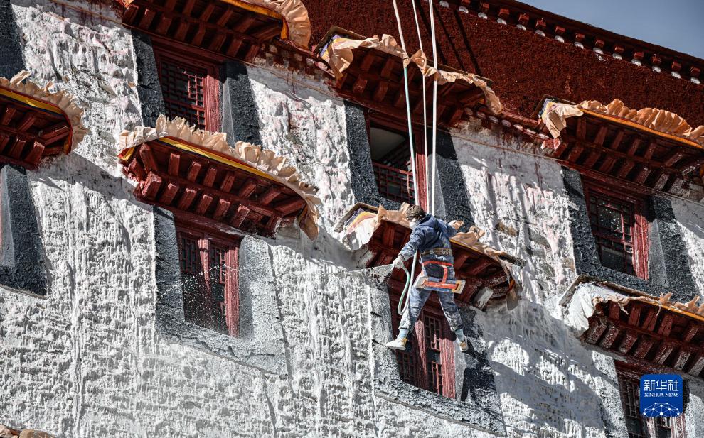 近日,西藏布達拉宮開(kāi)始進(jìn)行粉刷維護工作。為使經(jīng)過(guò)一年日曬雨淋的紅墻白壁保持鮮亮光彩,每年秋冬交替時(shí)節,布達拉宮外墻都要進(jìn)行粉刷“美容”。