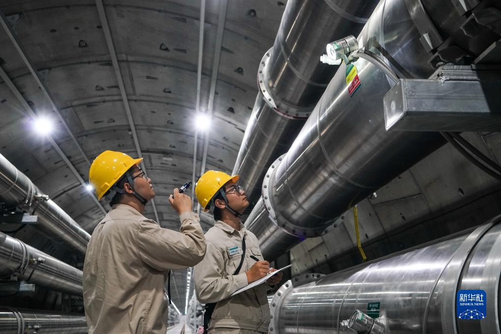 10月19日,國網(wǎng)江蘇電力工作人員在蘇通GIL管廊開(kāi)展例行巡檢。